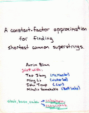 Slides for lecture on shortest superstring problem (taken from talk back in 1991...). Click on image to bring up larger jpeg.