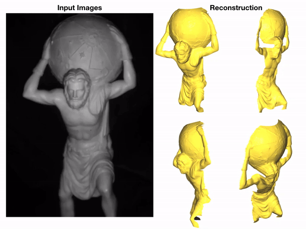 | Most photometric stereo approaches assume distant or directional lighting and orthographic imaging. However, when the source is divergent and is near the object and the camera is projective, the image intensity of a Lambertian object is a non-linear function of both the unknown surface normals and the unknown distances of the source to the surface points. The resulting non-linear optimization is non-convex and highly sensitive to the initial guess. In this paper, we propose a two-stage near-light photometric stereo method using circularly placed point light sources (commonly seen in recent consumer imaging devices like NESTcam, Amazon Cloudcam, etc). We represent the scene using a 3D mesh and directly optimize the vertices of the mesh. This reduces the complexity of the relationship between surface normals and depths in the image formation model. In the first stage, we optimize the vertex positions using the differential images induced by small changes in light source position. This procedure yields a strong initial guess for the second stage that refines the estimations using the raw captured images. We propose an accurate calibration approach to estimate the positions of the sources. Our approach performs better on simulations and on real Lambertian scenes with complex shapes than the state-of-the-art method with near-field lighting. |