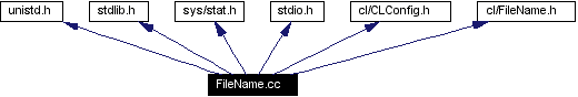 #include "cl/FileName.h"#include "cl/CLConfig.h"#include <stdio.h>#include <sys/stat.h>#include <stdlib.h>#include <unistd.h>Include dependency graph for FileName.cc: