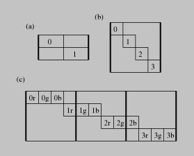 Media such as audio, images, and video are increasingly common in computer systems. Such data are represented by large arrays of small integers known as samples. Rather than wasting bits, samples are packed into memory. Figure combined illustrates three examples: monaural sound stored as an array of 16-bit values, a grayscale image stored as an array of 8-bit values, and a color image stored as interleaved 8-bit arrays of red, green, and blue samples. Such arrays are called signals.