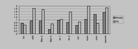 was run five times, and the best times were taken. The R4400 system