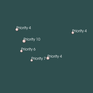 This example demonstrates how to add labels from an array to points. Each point is given a priority that determines which labels are visible when space is limited.
