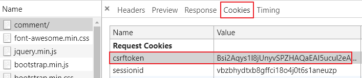 另一個 token 是當你成功登入時,會儲存在 client side ( 使用者端 ) 的 Cookies 中,名稱為 csrftoken,