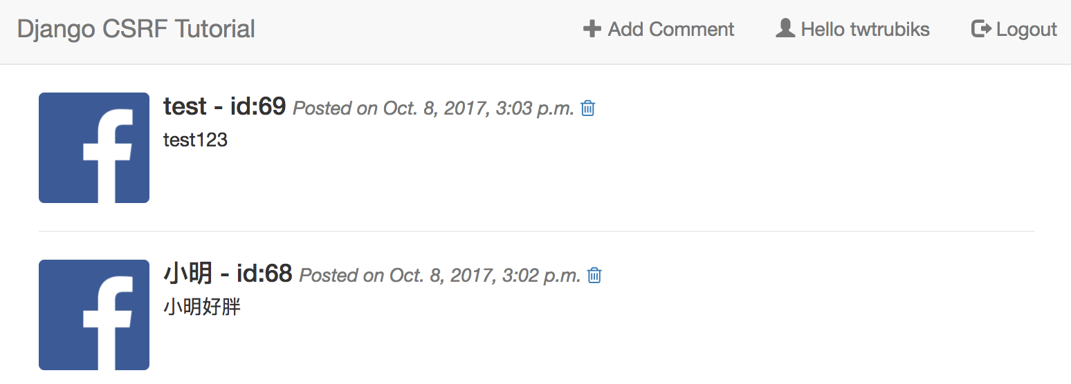 阻擋 CSRF 攻擊,如果你再試一次剛剛的流程,這次你會發現資料沒有被刪