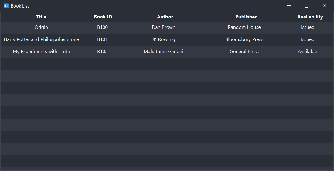 This is a library management software developed using JavaFX programming language. The entire development video with explanation of each and every part (in realtime) is available in my YouTube Channel Genuine Coder Youtube Channel.