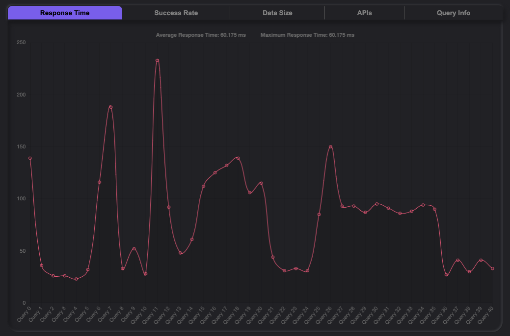 Our dynamic GUI, compiled using Aleph.js, allows users to send query requests to external APIs that use GraphQL. Under the hood, sophisticated and performant algorithms calculate performance metrics for each query request and Artemis immediately displays them as accessible and digestible analytics for developers.