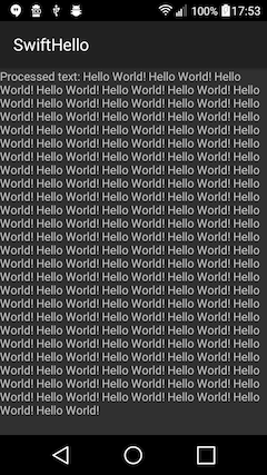 This generates Swift classes and a third Java source src/org/swiftjava/your_package/YourAppProxy.java that also needs to be included in your project. Consult the script genhello.sh and project "swift-android-samples/swifthello" for details. The source "swift-android-samples/swifthello/src/main/swift/Sources/main.swift" shows how to set this up with a native method called from the main activity.