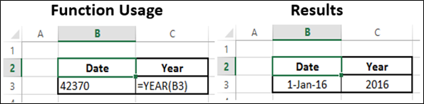 La función AÑO devuelve el año correspondiente a una fecha. El año se devuelve como un número entero en el rango 1900-9999.