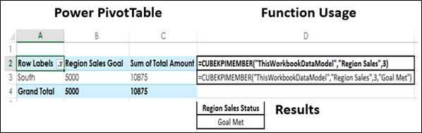 Pour utiliser le KPI dans un calcul, spécifiez la fonction CUBEKPIMEMBER comme argument member_expression dans la fonction CUBEVALUE.