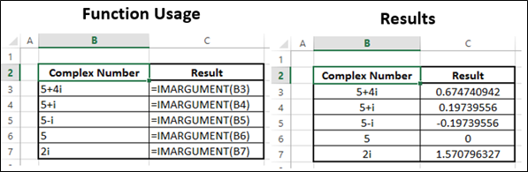 La fonction IMARGUMENT renvoie l'argument $ \ theta $ (theta), un angle exprimé en radians, tel que -