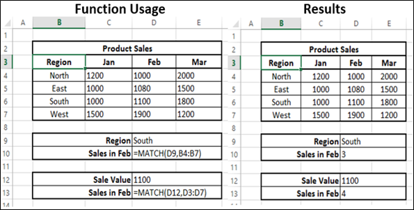 MATCH renvoie la position de la valeur correspondante dans lookup_array, pas la valeur elle-même. Par exemple, MATCH ("b", {"a", "b", "c"}, 0) renvoie 2, qui est la position relative de "b" dans le tableau {"a", "b", "c" }