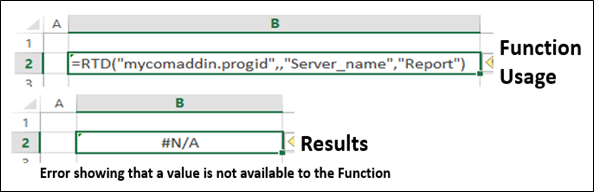 Le complément d'automatisation RTD COM doit être créé et enregistré sur un ordinateur local. Si vous n'avez pas installé de serveur de données en temps réel, la fonction RTD renvoie le #NAME? message d'erreur dans une cellule lorsque vous essayez d'utiliser la fonction RTD.