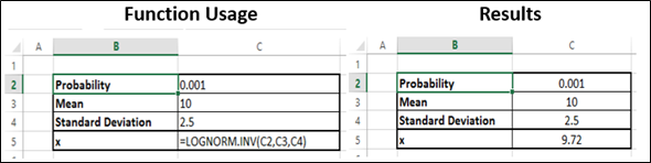 Si p = LOGNORM .DIST (x ...) alors LOGNORM.INV (p ...) = x. Utilisez la distribution log-normale pour analyser les données transformées de manière logarithmique.