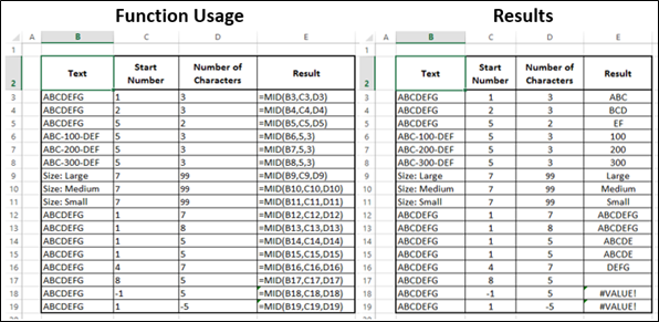 MID (text, start_num, num_chars)