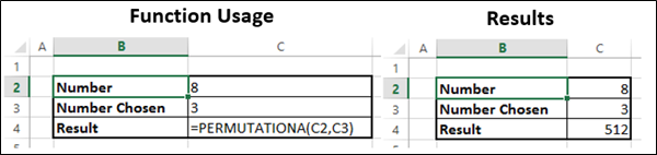 Si nombre <nombre_choisi, PERMUTATIONA renvoie le #NOMBRE! valeur d'erreur.