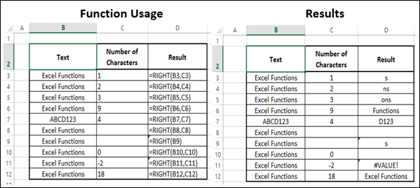 Si num_chars est <0, RIGHT renvoie #VALUE! Erreur.