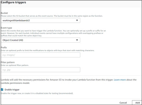 Step 4 − Exécute AWS Lambda Code uniquement lorsqu'il est déclenché par les services AWS dans les scénarios tels que -