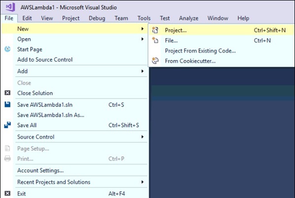 Maintenant, ouvrez Visual Studio 2017 et vous devriez voir une page d'accueil d'AWS comme indiqué ci-dessous -
