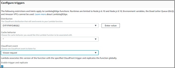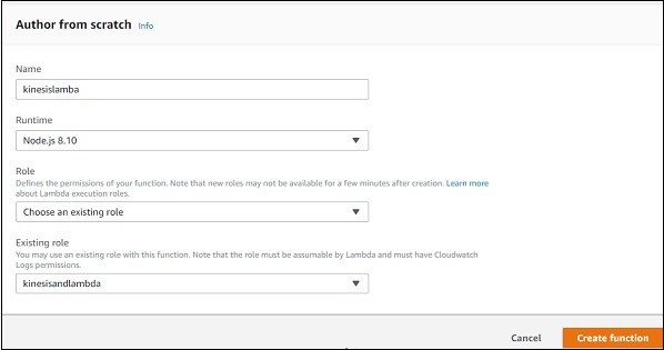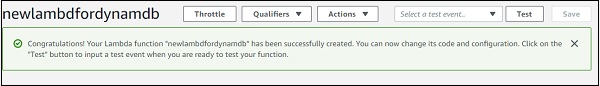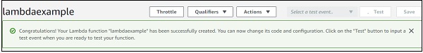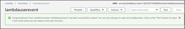 Cliquez sur Create function et l'écran affiche les détails suivants -
