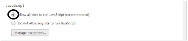 Allez dans Menu → Préférences → Afficher les paramètres avancés ... → cliquez sur le bouton Paramètres de confidentialité / contenu. Sous JavaScript, choisissez "Autoriser tous les sites ...