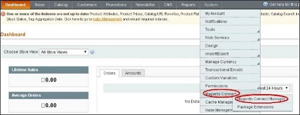 Step 3 - Connectez-vous maintenant à votre panneau d'administration Magento et accédez au System → Magento Connect → Magento Connect Manager option.