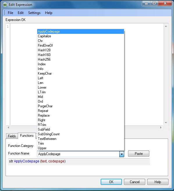 QlikView possède de nombreuses fonctions intégrées, qui peuvent être appliquées aux données déjà disponibles en mémoire. Ces fonctions sont organisées en plusieurs catégories et la syntaxe de la fonction apparaît dès qu'elle est sélectionnée. Nous pouvons cliquer sur le bouton Coller pour faire entrer l'expression dans l'éditeur et fournir les arguments.