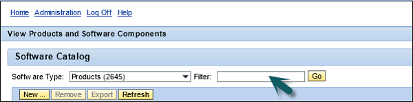 Software components - Ceci permet d'afficher les composants logiciels dans le catalogue de logiciels SAP.