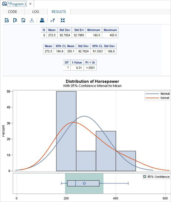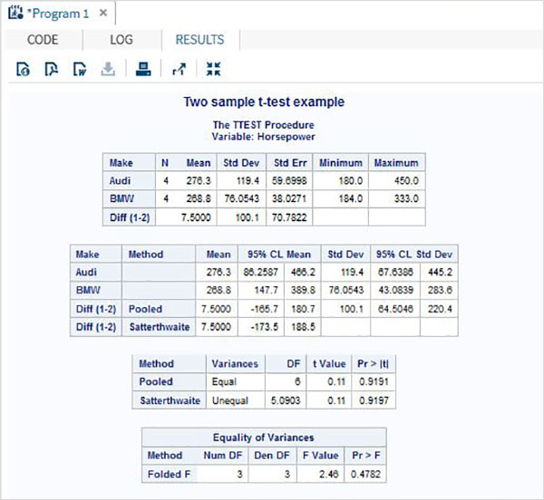 proc ttest data = cars1 sides = 2 alpha = 0.05 h0 = 0;