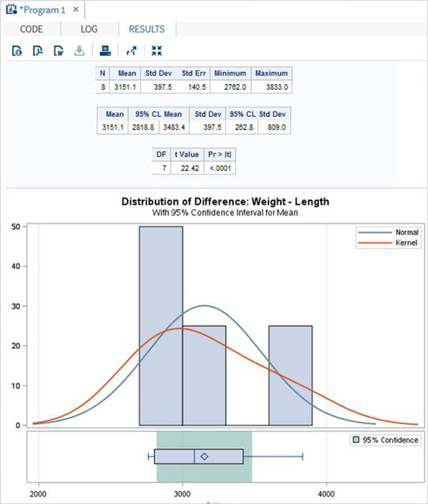 proc ttest data = cars1 alpha = 0.05 h0 = 0;