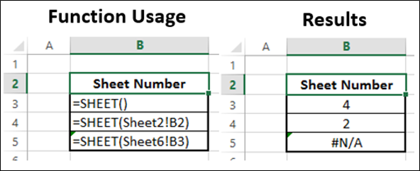 Fungsi SHEET mengembalikan nomor lembar dari lembar referensi.