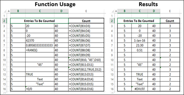 Fungsi COUNT menghitung jumlah sel yang berisi angka, dan menghitung angka dalam daftar argumen. Gunakan fungsi JUMLAH untuk mendapatkan jumlah entri dalam bidang angka yang ada dalam rentang atau larik angka.