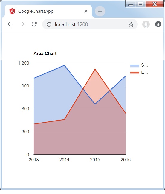 Kami telah menggunakan AreaChart kelas untuk menunjukkan grafik berbasis area.