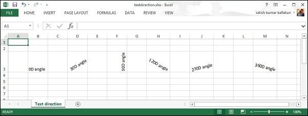 Itu textdirection.xlsx File terlihat sebagai berikut.