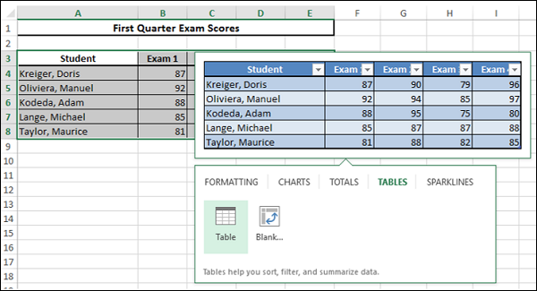 Namun, ada operasi tertentu yang lebih efektif saat data berada dalam tabel daripada dalam rentang. Ada juga operasi yang khusus untuk tabel.
