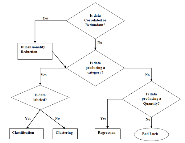 Diagram berikut menunjukkan jenis tugas yang sesuai untuk berbagai masalah ML -