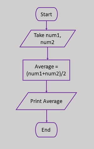 Berikut adalah diagram alir untuk menghitung rata-rata dua angka.