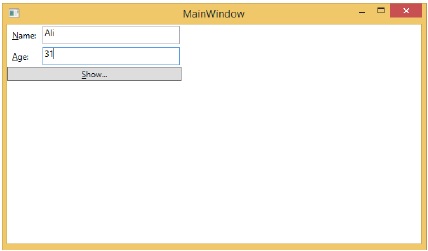 Dalam kode XAML, kami mengikat nama properti dan Usia, tetapi kami belum memilih objek milik properti itu.