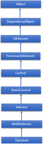 Un DataGrid è un controllo che visualizza i dati in una griglia personalizzabile. Fornisce un modo flessibile per visualizzare una raccolta di dati in righe e colonne. L'eredità gerarchica della classe DataGrid è la seguente: