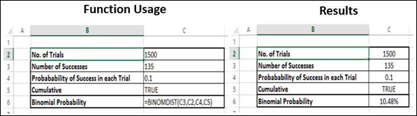 이 함수는 개별 항 이항 분포 확률을 반환합니다. 시험 또는 시행 횟수가 고정 된 문제, 시행의 결과가 성공 또는 실패 일 때, 시행이 독립적 일 때, 그리고 실험 전체에서 성공 확률이 일정 할 때 BINOMDIST를 사용합니다.