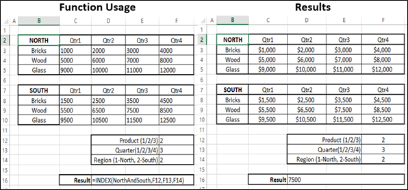 Row_num 및 Column_num 인수가 모두 사용되는 경우 INDEX는 Row_num 및 Column_num의 교차점에있는 셀의 값을 반환합니다.