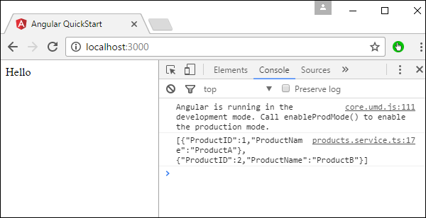 클래스의 private _producturl = 'app / products.json'문은 데이터 소스의 위치를 지정하는 데 사용됩니다. 필요한 경우 웹 서비스의 위치를 지정할 수도 있습니다.