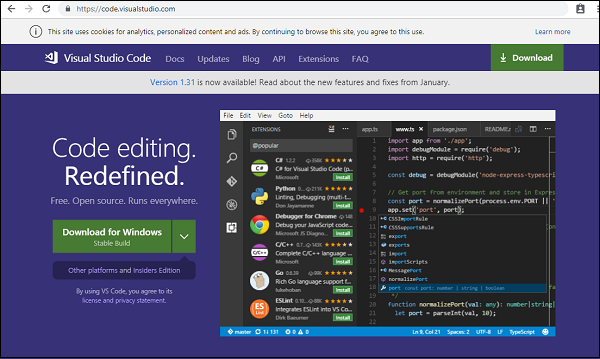 Visual Studio Code를 다운로드하려면 https://code.visualstudio.com/ Windows 용 다운로드를 클릭합니다.