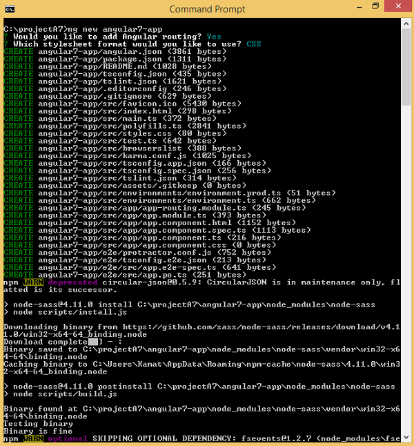 위의 명령은 Angular 7에서 프로젝트를 설정하는 데 도움이됩니다.