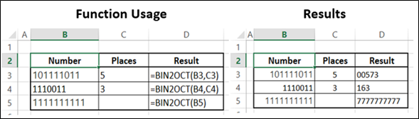 Se DEC2OCT exigir mais do que caracteres de lugar, ele retornará o # num! Valor de erro