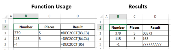 Se locais não for numérico, DEC2OCT retornará o erro #VALUE! valor de erro.