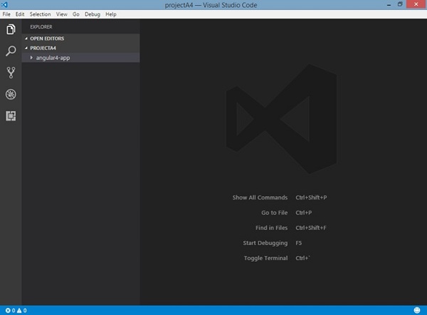 Usaremos Visual Studio Code IDE para trabalhar com Angular 4; você pode usar qualquer IDE, ou seja, Atom, WebStorm, etc.