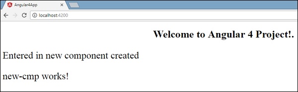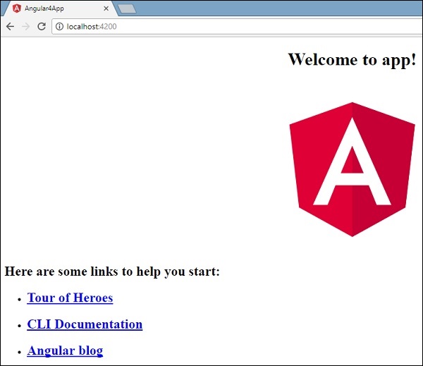 O servidor da web inicia na porta 4200. Digite o url http://localhost:4200/no navegador e veja a saída. Assim que o projeto for compilado, você receberá a seguinte saída -