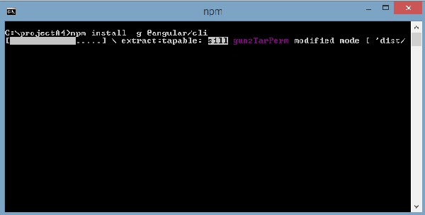 Digite o comando acima para instalar o Angular 4. O processo de instalação começará e levará alguns minutos para ser concluído.
