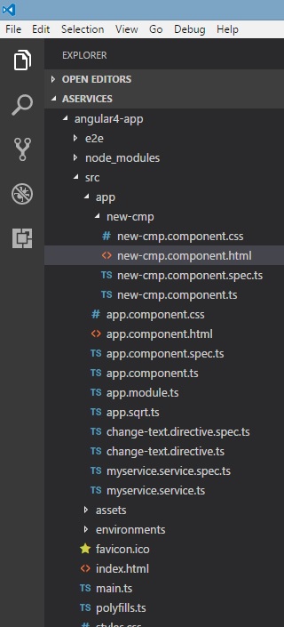 Vamos considerar o Angular 4-appprojeto. Vamos abrir o aplicativo Angular 4 e ver como é a estrutura de pastas.