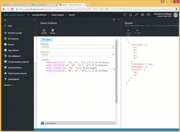 A seguir está a consulta com diferentes funções de array.